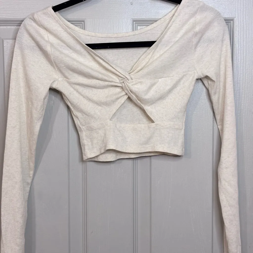 Arizona Jean Company Cream Twist back Crop Top women’s long sleeves small White - $11 - From Noelia