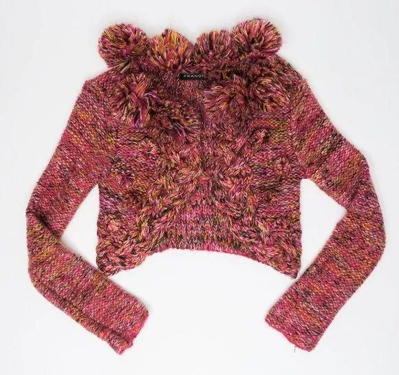 Frangi Pink Pom Pom Knit Cardigan Sweater Frangi, beautiful hot pink chunky knit cropped cardigan s... Show more