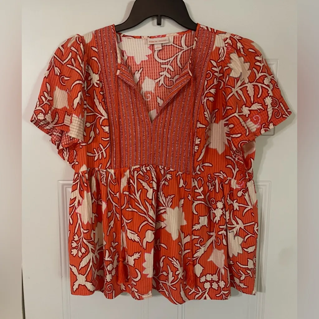 Size: Large Color: Orange, cream, pink Material: Cotton, rayon Measurements: •pit to pit 21 in... Show more