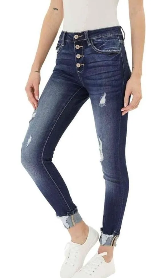 Kancan Estilo blue distressed button fly high rise jeans sz 29 - $35 - From Briahnna