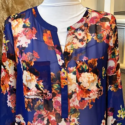 Anthropologie Meadow Rue Sheer Floral Blouse Blue Small Long sleeves that can be rolled up and butto... Show more