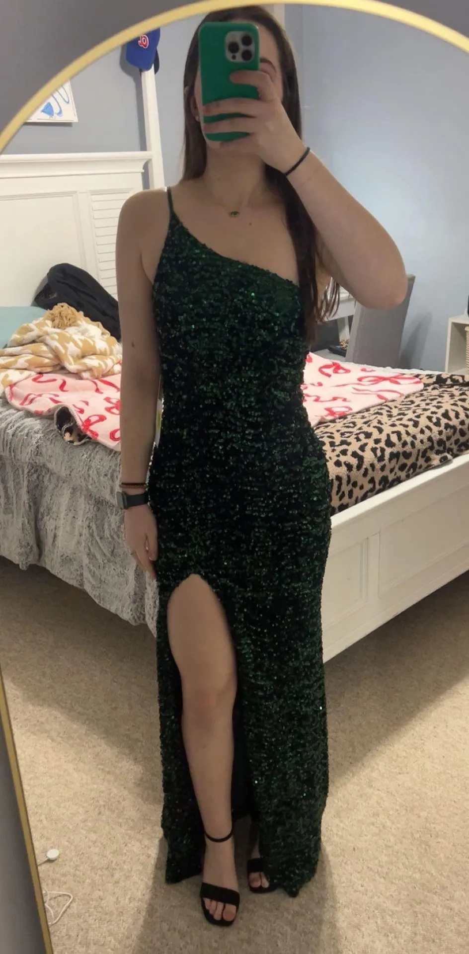 This dress is gorgeous, and brand new! I got it and ended up not wearing it! The slit is the perfect... Show more