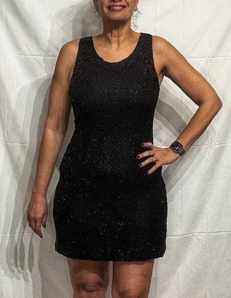 Laurence Kazar Black Beaded Vintage Mini Dress Sz L Size L - $50 - From Bryanette