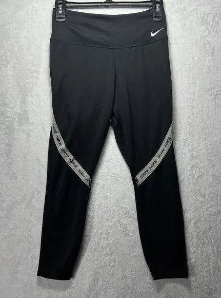 Nike Leggings Women Small Cropped Spell out Swoosh Logo Wide Waistband 10’ Rise. Preowned. PLEASE N... Show more