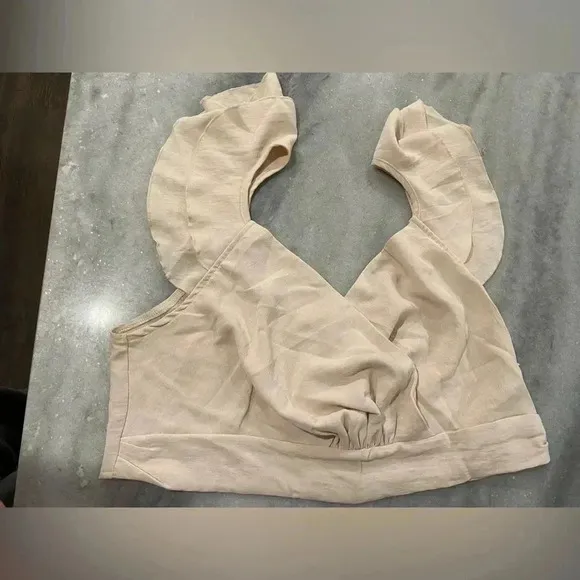 Shein Vcay Curve New with tags Women’s size 1X Ruffle sleeve crop top Cream wrap front zip back