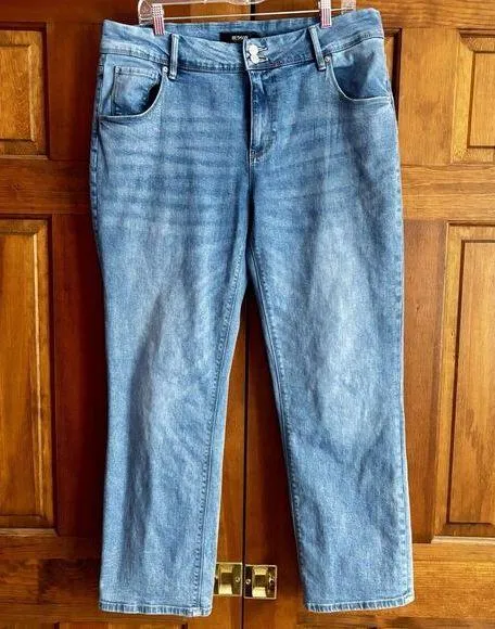 Hudson Midrise Straight Leg Blue Denim Jeans in size 14 for women. These jeans feature a 5-pocket de... Show more
