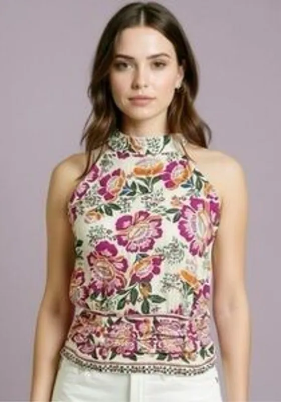 Nicole Miller Artelier NWOT Women's Boho Floral Halter Blouse Size XS Pink - $22 - From Amy