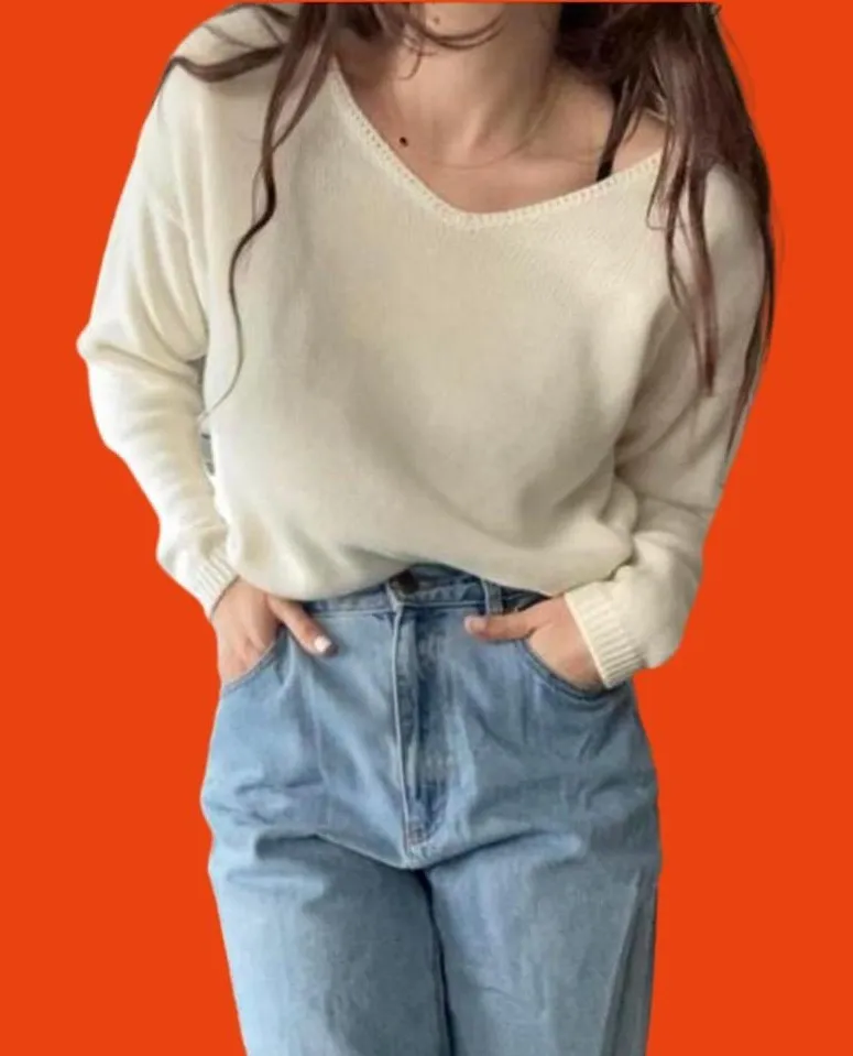 Vintage Christopher & Banks white v neck knit sweater šŸ¤ - $27 - From y o r