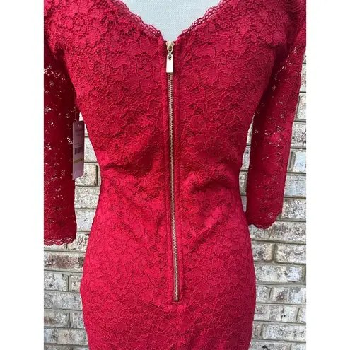 -NEW WITH TAGS -Laundry by Shelli Segal Lace Cocktail Dress -Size: 4 -Color: “Cranberry” (Dark Red)... Show more