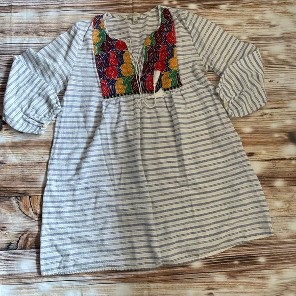 J. Crew Women's Small Boho Tunic Embroidery Top Tassel Striped 3/4 Sleeve Blouse Small Great condit... Show more