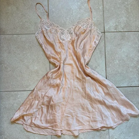 Vintage from the 90’s Victoria’s Secret peach silk Slip Dress ♡ size: small ♡ brand: victoria’s se... Show more