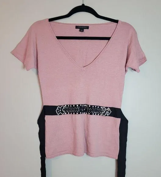 Banana Republic Factory mauve short sleeve sweater with black bejeweled sash waist. Size S. 70% cott... Show more