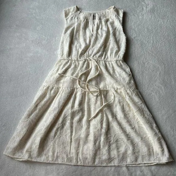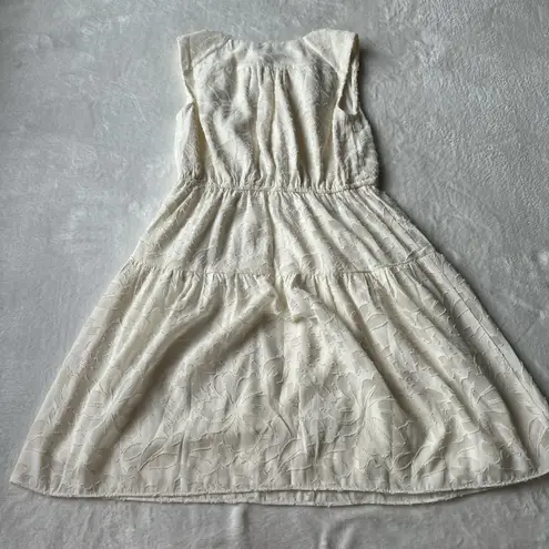 Loft outlet floral dress Size XXSP Elastic waist with tie V-neck Cream color with floral details Lin... Show more