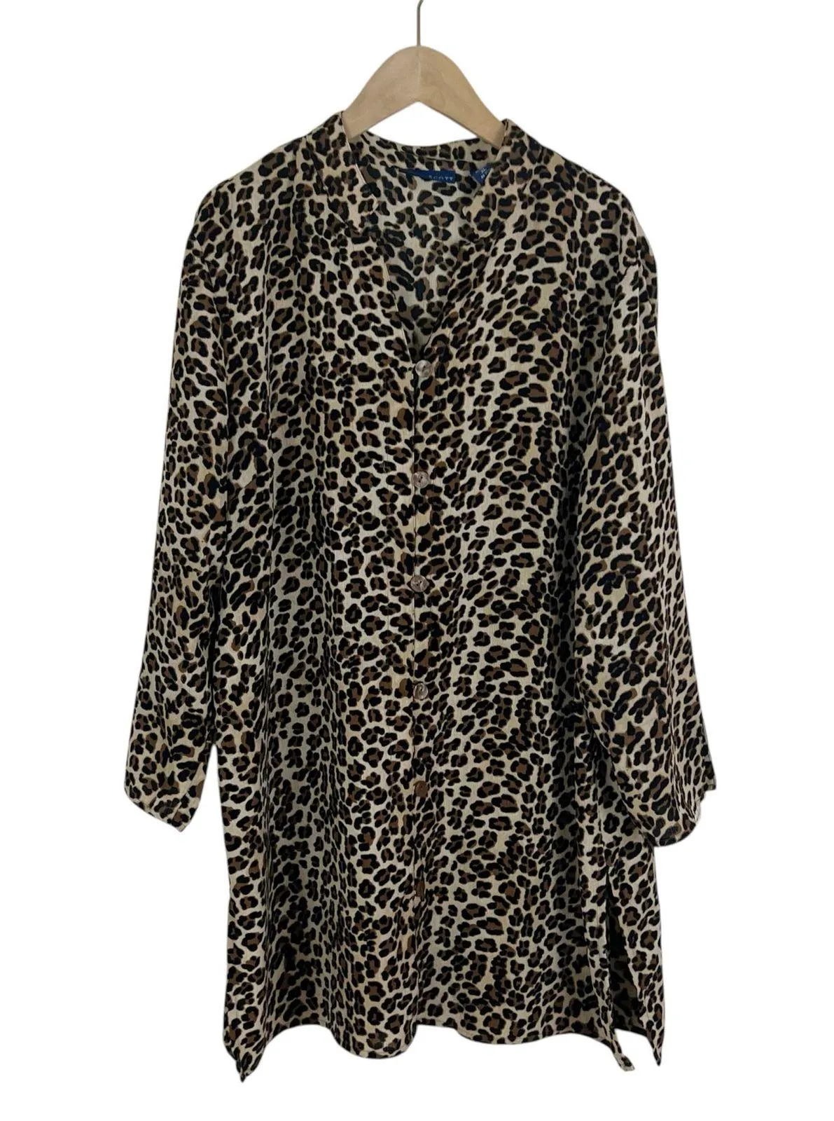 Karen Scott Leopard Print Button Front TunicTop Size XL Black - $21 - From Amanda