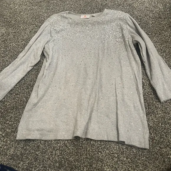 Quacker Factory Gray embellished sparkly long sleeve (approximately 16 1/4 in) shirt Large 100... Show more