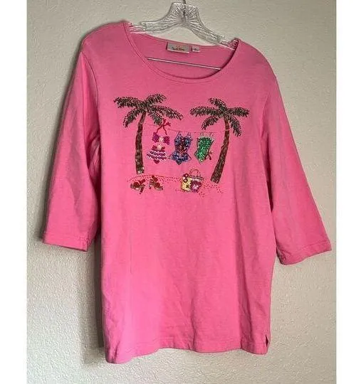 Quacker Factory Pink Beaded Embellished Palm Tree Bathing Suit Detail Shirt L Size L - $17 - From Samantha