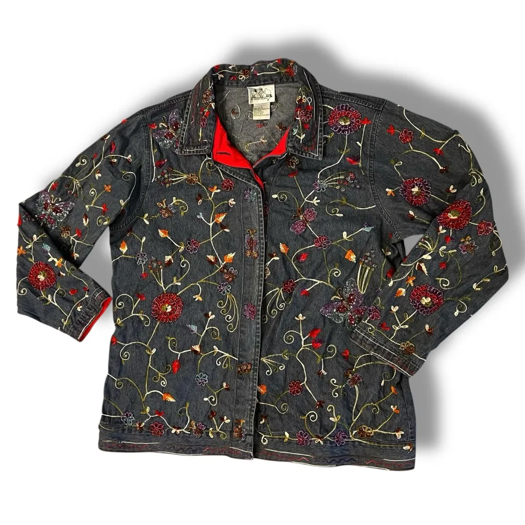 Vintage 90s Quaker Factory Jacket Womens Large Blue Embroidered Beaded Art To Wear •Beautiful beadwork throughout •Embroidered detailing •Colorful •Button front closure •Long sleeve •Collared #dopamine #butterflies #teacher #90s #dragonflies *colors may vary due to lighting or viewing devices *Feel free to reach out with any Questions / Clarification or to request any additional photos. We are happy to help! *we will ship FAST and with care *remember that this is a genuine vintage piece and therefore may have some visible aging. Of course, we think this adds to the “cool factor” but please make sure to look at all photos carefully and be sure that you are comfortable with your purchase.