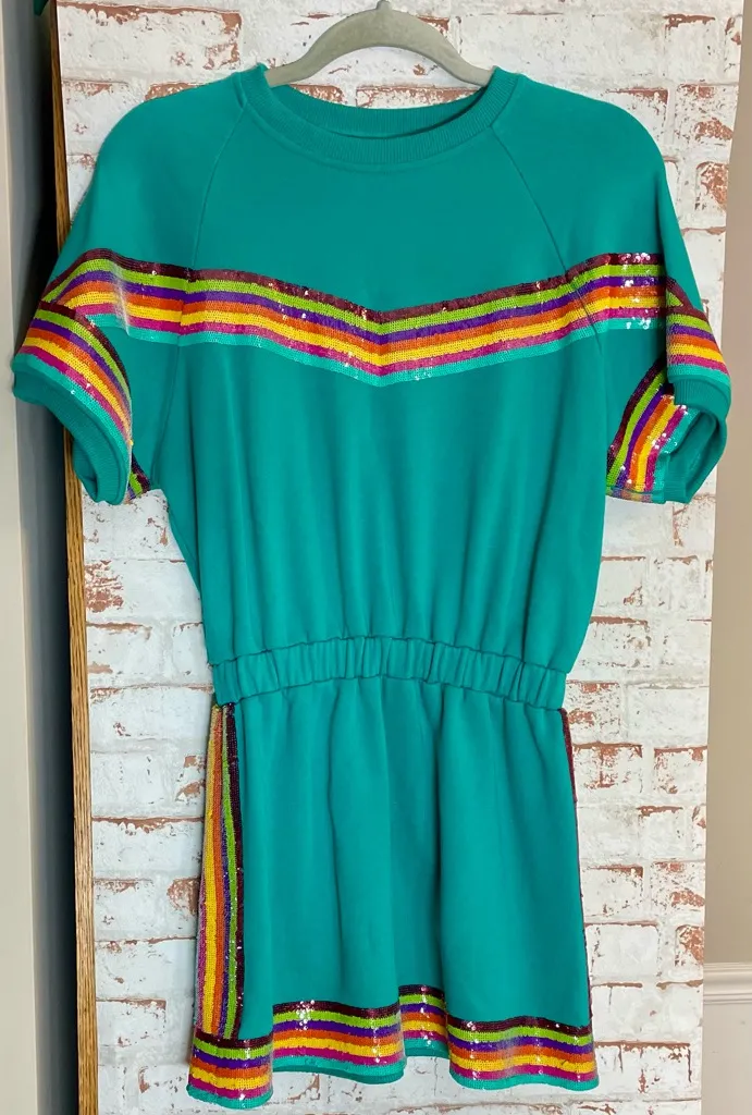 QUEEN OF SPARKLES Teal Mini Dress with Rainbow Stripes Green Size XS - $70 - From Megan