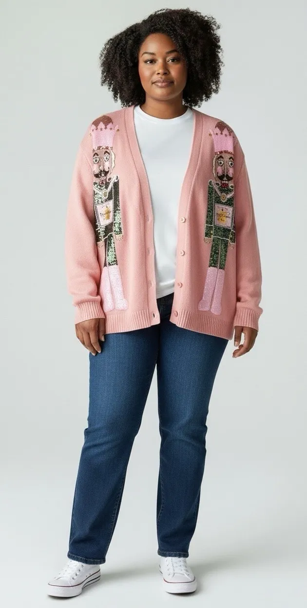The Queen of Sparkles Women's Pink Long Sleeve Champagne Nutcracker Cardigan in XXL is a stylish and... Show more