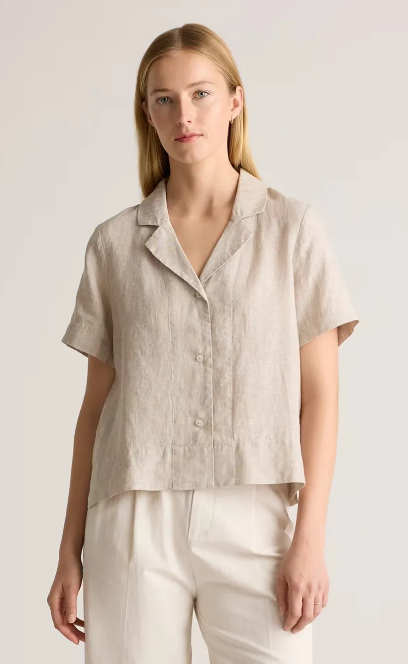 Excellent condition Size large I also have the matching wide leg pant in a size medium if interested. Say hi to relaxed, laidback luxe. Throw on this collared short sleeve with anything to level up a day-to-day fit. The boxy cut will pair with our linen shorts or pants to create your dream resort-life look. Our linen is made from 100% European flax, which is more sustainable and less resource-intensive to grow. Linen is the ultimate year-round fabric because it's breathable and naturally heat-regulating.