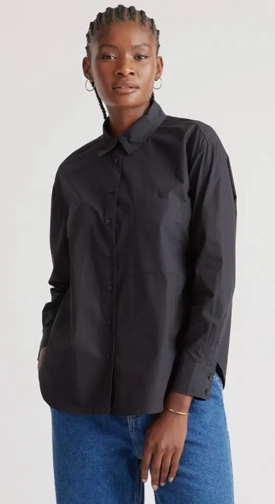 Quince 100% Organic Cotton Poplin Long Sleeve Boyfriend Button Down Shirt Sz L Black Size L - $32 New With Tags - From bat