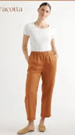 QUINCE european linen pants You're never going to look more chill than you will wearing these. They have a relaxed fit, three pockets, and elastic waist. Available in a wide variety of colors to suit your vibe. Our linen is made from 100% European flax, which is more sustainable and less resource-intensive to grow. Linen is the ultimate year-round fabric because it's breathable and naturally heat-regulating. Made from ethically woven from 100% European flax linen Breathable, durable, hypoallergenic, lightweight Elastic waistband Two front pockets and one back pocket Due to the nature of this fabric, the white linen may be slightly sheer This material is certified by OEKO-TEX Standard 100 (Certificate Number: BJ015 226317) which ensures that no hazardous substances are present tags: eco-friendly, ethical fashion brand, climate neutral, tan, caramel, pocket, comfy, casual, running errands, loungewear, slouchyy, 1112120 NPB
