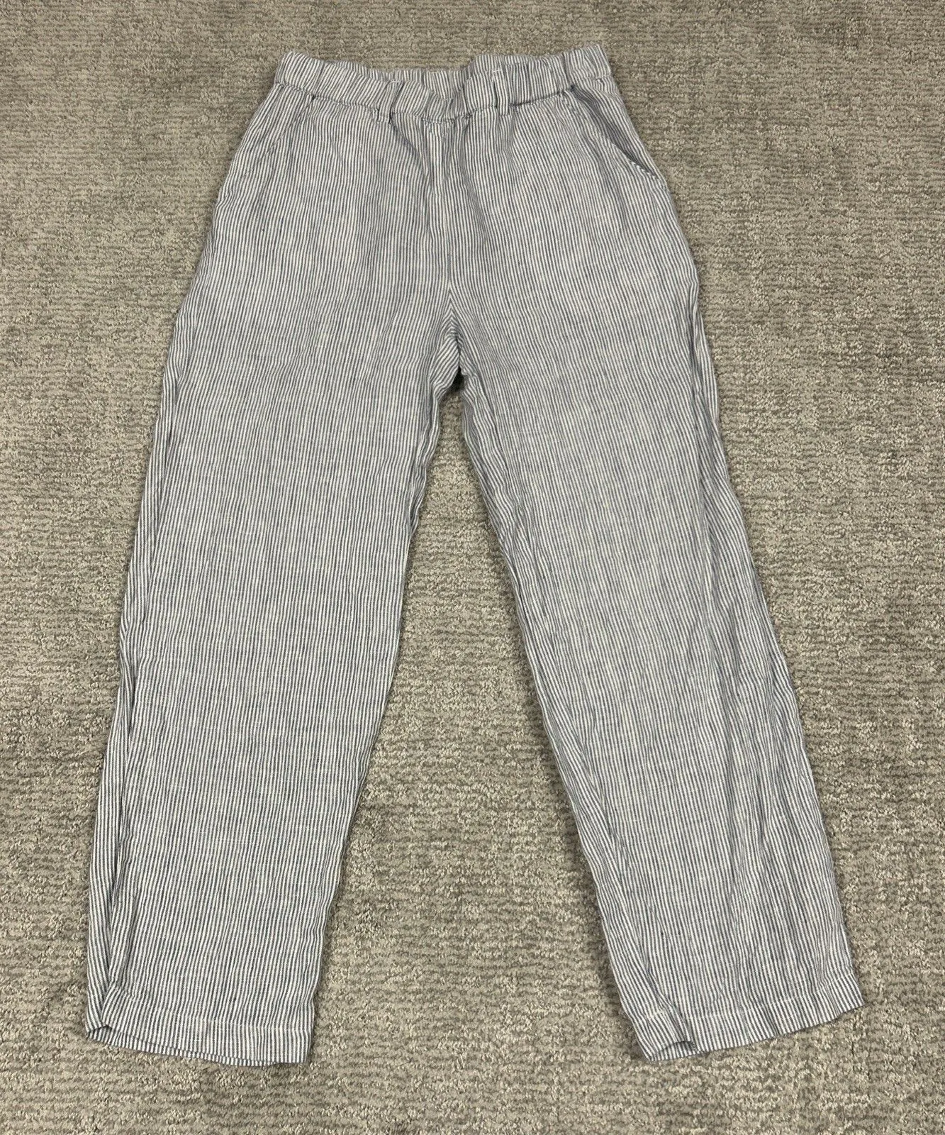 Quince Pants Womens XS Cropped Ankle Striped Linen Blue White Pockets - $35 - From kelli