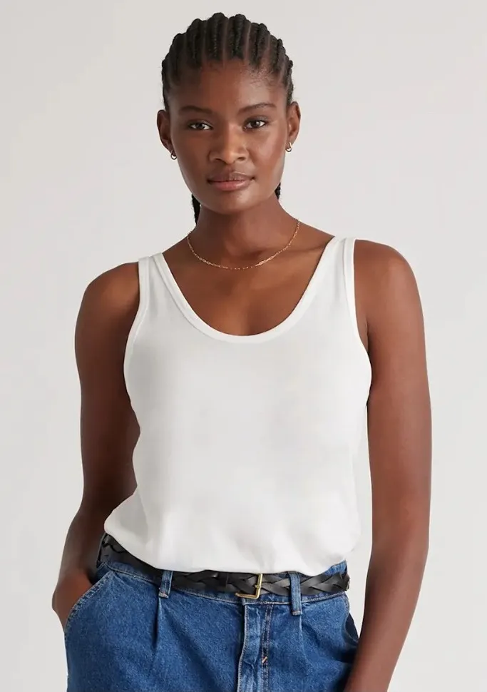 Quince cotton modal double scoop neck tank top in white. A versatile staple for layering or wearing... Show more