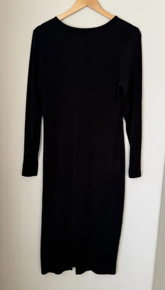 Quince Women’s Black Tencel Rib Knit Long Sleeve Midi Dress Fitted Size Large - $45 - From Alyssa