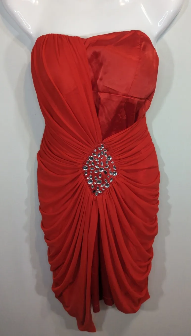 Qurio by Aggie Strapless Cocktail Dress Womens Size L Red Crystal Embellished Red with Crystal Embe... Show more
