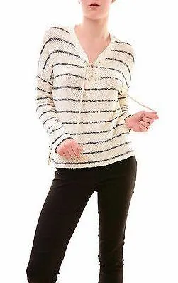 Sundry Striped Lace Up Sweater Natural White navy blue Size 1 small. Super cute sweater that is lig... Show more