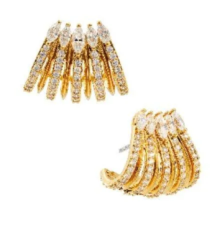Covered in sparkling marquise and round cubic zirconia, these lobe-spanning hoops cut a contemporary silhouette. • 3/4"W x 1/2"L • Post back • 18k-gold plate cubic zirconia Excellent preowned condition