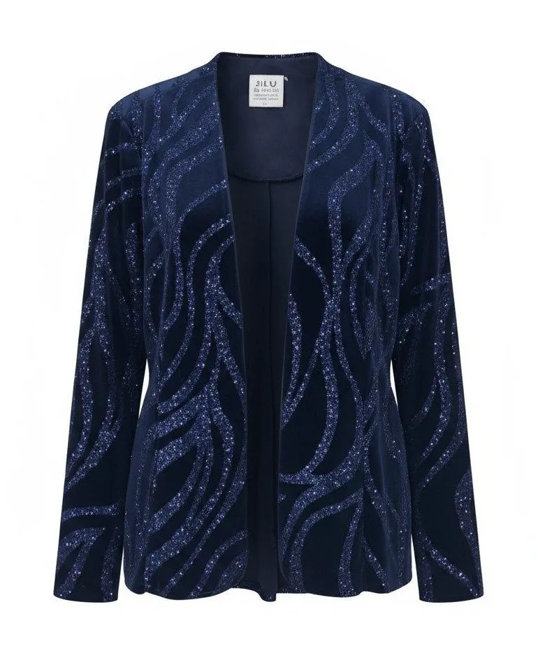 Measurements: • Sleeve Length: 23 in • Bust (flat lay, armpit to armpit): 20 in • Length (shoulder to hem): 24.5 in ***There is not a size tag on the jacket, so the size listed in the title is based off the RM Richards sizing chart based off the measurements. Please be sure to check your measurements for correct sizing. Type: Jacket Outer Shell Material: Velvet Style: Basic Jacket Department: Women Accents: Glitter, Sequin Features: Lined, Collarless, Open Fabric Type: Velvet Pattern: Geometric Season: Fall, Winter Occasion: Party/Cocktail Condition: Very good. May have some light wear consistent with pre-owned clothing. Keywords: velvet, glitter, swirl pattern, evening wear, special occasion, cocktail, party, elegant, evening jacket, statement piece, metallic, shimmer, formal, festive, holiday, Christmas, New Year's, holiday party