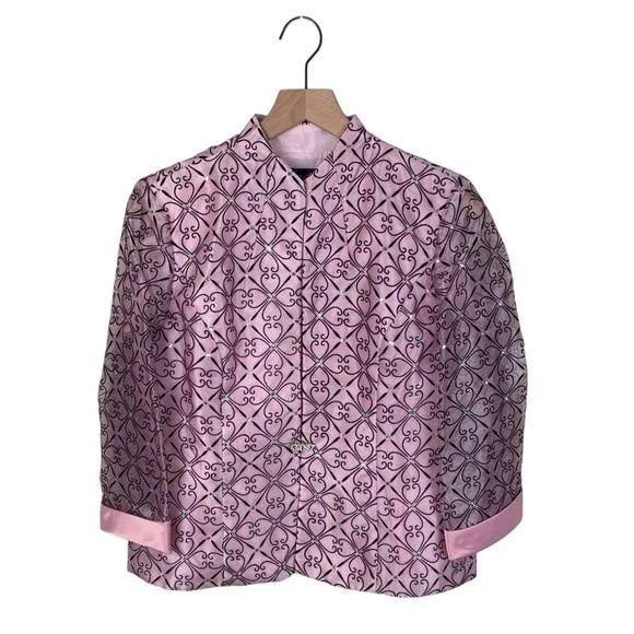 R&M Richards Sheer Pink Embellished 2 Piece Jacket Tank Set Light pink with intricate black velvet... Show more