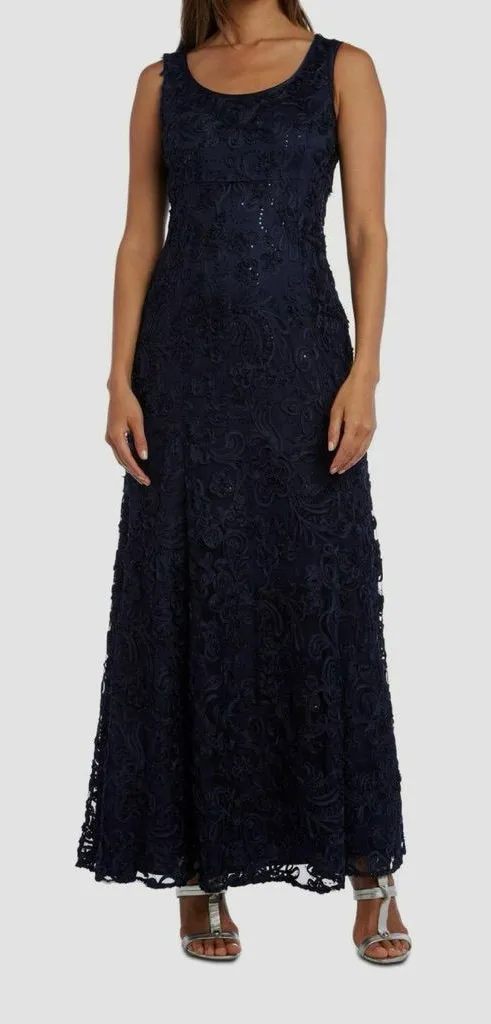 R&M Richards Navy Blue Floral Lace Evening Gown Size 6 Formal Dress Excellent condition Sleeveless... Show more