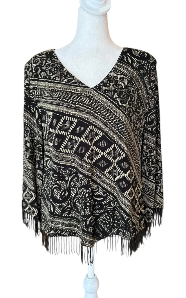 R M Richards Blouse Printed Beaded Fringe Black White Womens Size 16 - $29 - From Jessica