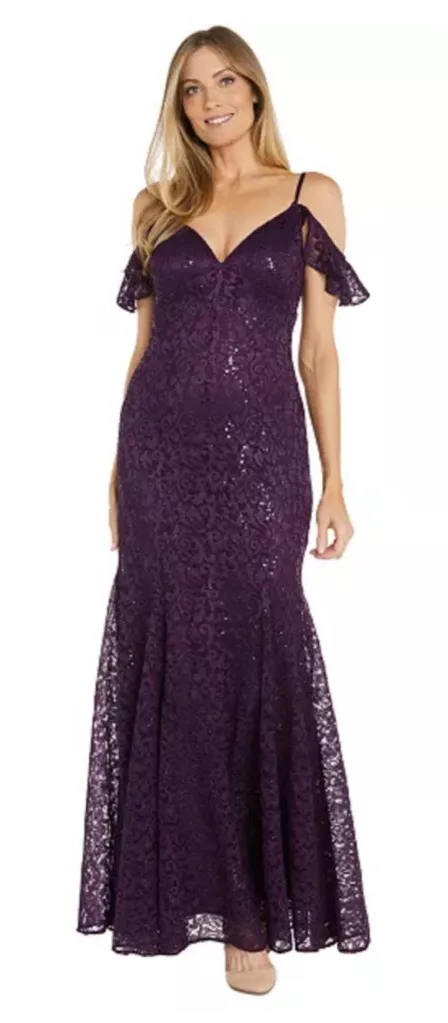 R & M Richards Sequins Lace Cold Shoulder Mermaid Gown Plum Purple 12 - $65 New With Tags - From Nordic