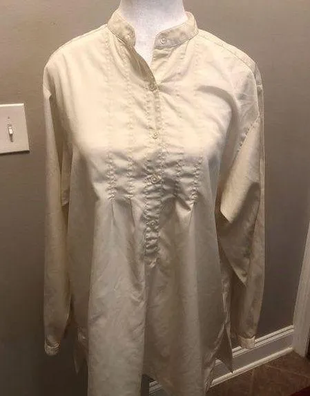 This blouse has made me say FML, more than once. It’s beautiful, and so very trendy right now and I bought it immediately. When I got home, I realized someone must have changed a tire in this blouse! I’m only kidding, but there are a couple stains that were very obscure but I did find them. There is a a tiny stain on the front and back, both photographed and hard to see, please check out the photos carefully. They would not be noticeable unless someone pointed them out. However, it no longer looks as if a tire was changed in this shirt! I was successful in getting out 99% of the stain. And just fyi, FML is not only a saying for epic fails, it’s a boy band in Hong Kong these days! It measures armpit-armpit Sleeve Length I went to so much trouble getting this presentable, because it’s a lovely and welll made blouse that would complement that Cottagecore look or Grandmacore look that is so popular these days. This blouse also has a Victorian look with it’s high neck and perfectly pleated details. This is a very tailored and detailed blouse. Th ask for looking and if I didn’t come back and add measurements, please message me. That means I’ve forgotten to do it. So FML, I’ll add the measurements ASAP!