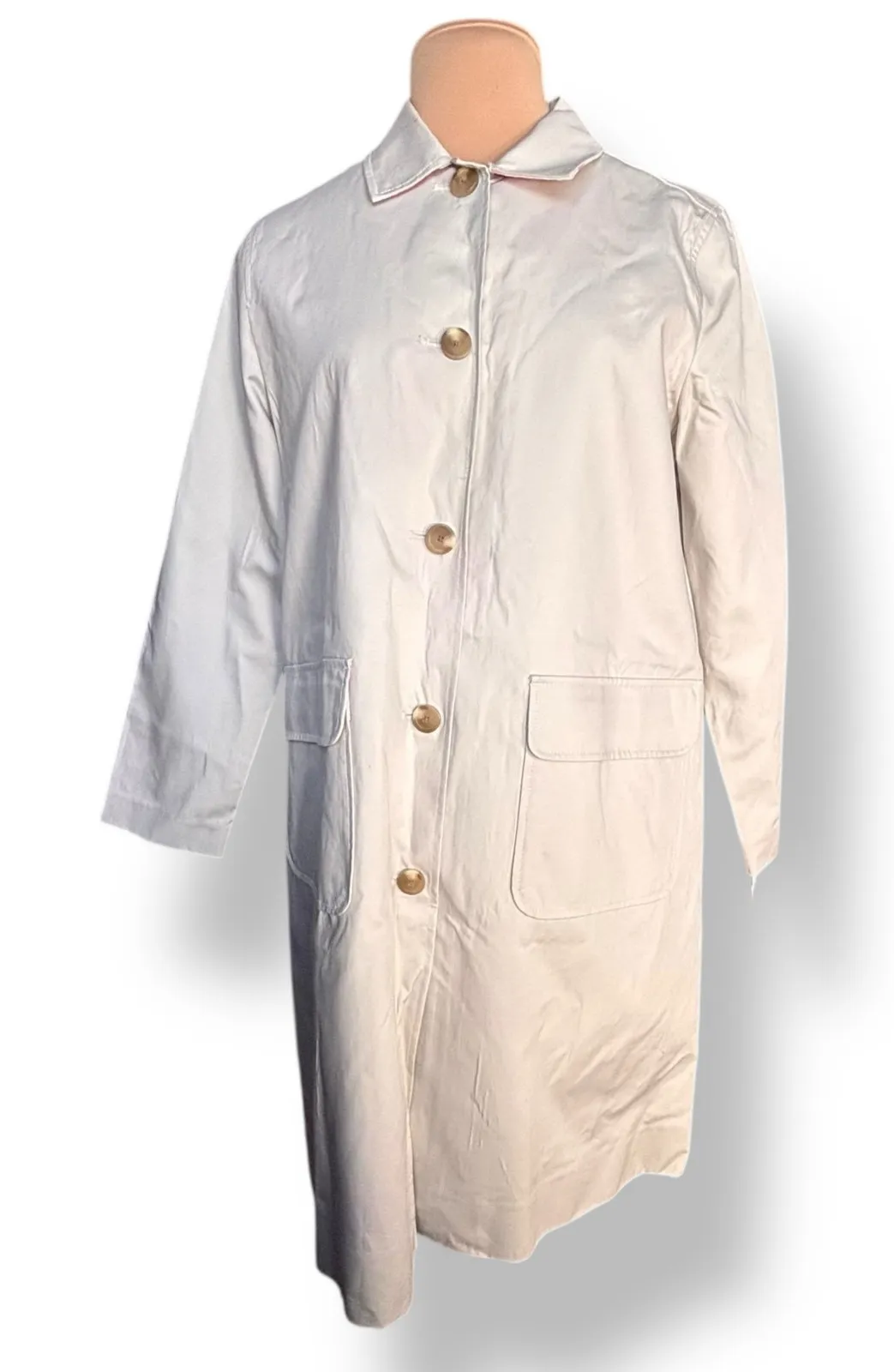 Liz Claiborne New York Coat Classic pale tan trench-style coat with full button front and large patc... Show more