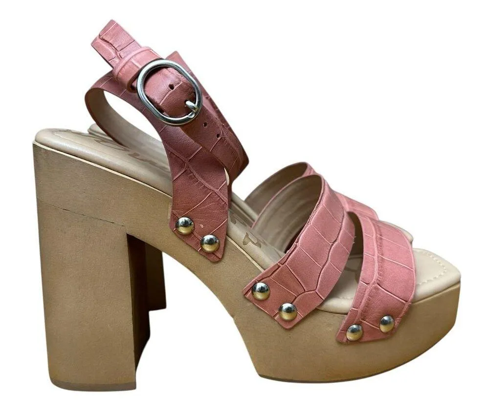 Sam Edelman Rosalind Terracotta Rose Women's Platform Block Heel Sandals Leather croc-embossed str... Show more