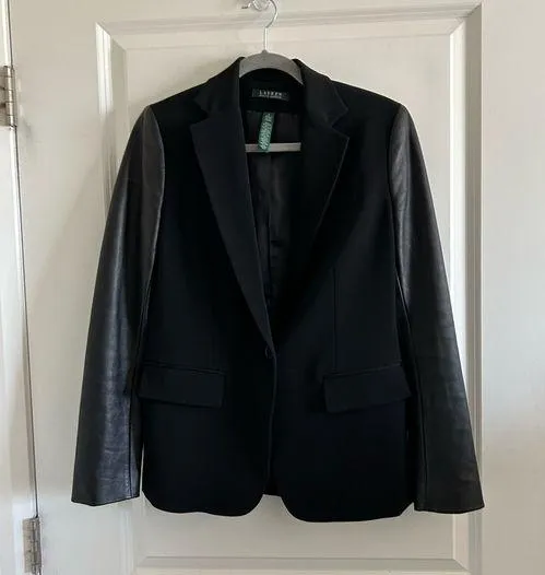 Lauren Ralph Lauren Women’s Wool Blazer Leather Sleeve Single Button 4 B… Black - $201 - From Kartia