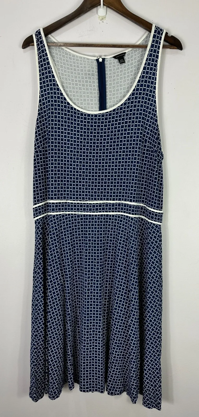 * Size: XXL * Color: Navy and white geometric print * Fabric: 94% Rayon, 6% Spandex * Flatteri... Show more