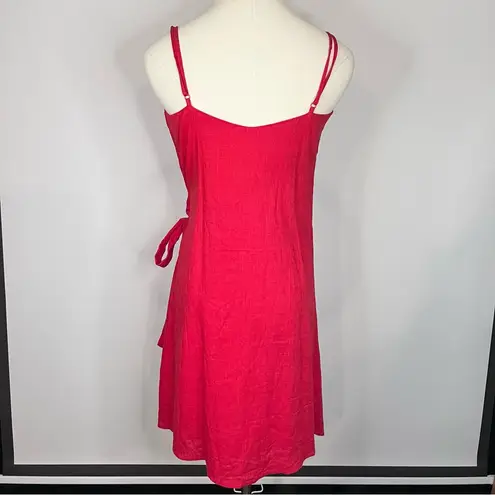 Women’s THE IMPECCABLE PIG Red Linen Blend Wrap V-Neck Mini Dress. Lined. Adjustable spaghetti strap... Show more
