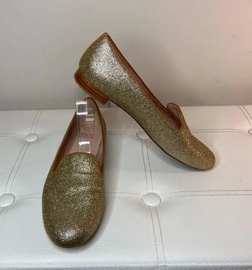 Stuart Weitzman Gold Sparkle Glitter Loafers Flats Sz 9 Style# 0W23759 Perfect for the holidays