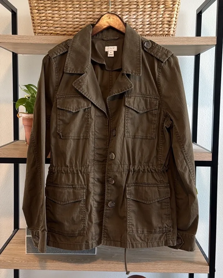 J. Crew Classic Green Military Safari Utility Button & Drawstring Canvas Cotton Jacket, M EUC- no w... Show more