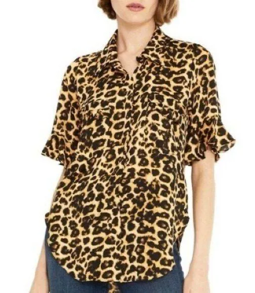 This MISA Los Angeles Louise blouse features a flowing satin crepe fabric in a bold leopard print, complete with ruffle-trimmed pockets and sleeves for a feminine touch. Brand: MISA Los Angeles Style: Louise Blouse Color: Leopard Print Size: Women’s Size Small Material: 100% Viscose Features: • Flounce ruffle-trimmed short sleeves • Front button closure • Ruffle-trimmed chest pockets • Can be styled tied or worn loose • Satin crepe texture Approximate Measurements (laid flat): Pit to Pit: 19 in, Length: 25 in Condition: Pre-owned; in excellent condition. No rips, stains or holes. Please see all photos for condition details. Style Tags: Animal Print Blouse, Ruffle Top, Satin Crepe, Relaxed Fit, Button Down Aesthetic Tags: Feminine Edge, Casual Glam, Print Statement, Resort Wild, Modern Classic