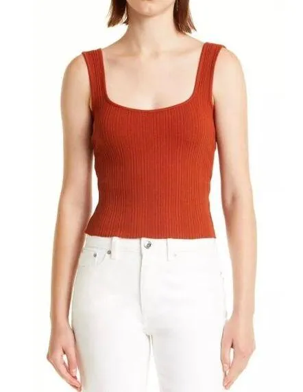 Vince Square Neck Rib Tank Top in Rust Amber. Size XS. Preowned condition. Please refer to photos fo... Show more