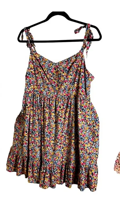 Old Navy Womens Tie Shoulder Fit and Flare Floral Cami Mini Dress Size Large petite Pre-loved good... Show more