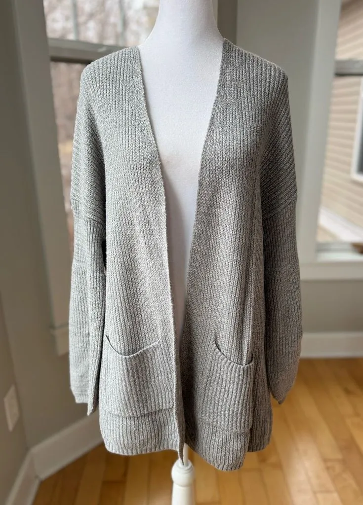 Wild fable light gray oversized open cardigan sweater with statement ballon sleeves. No closures. Si... Show more