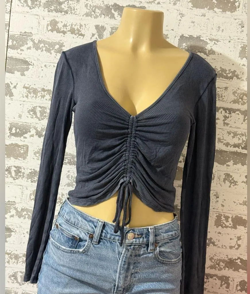 Charcoal ribbed tee from American Eagle Outfitters. Soft and stylish.